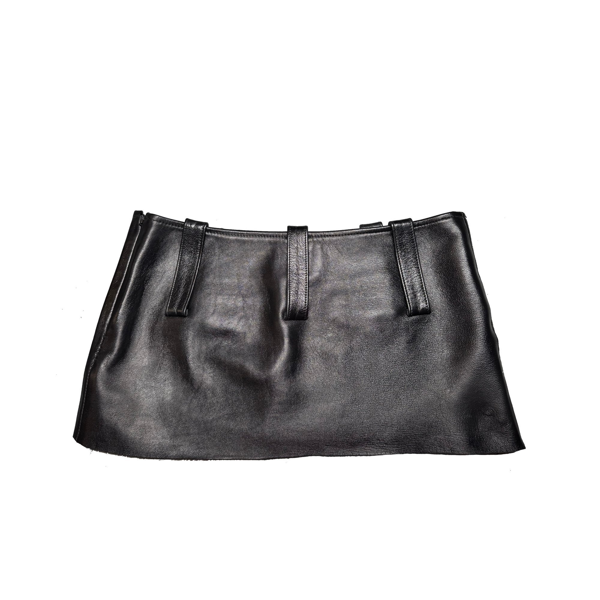Low rise leather mini skirt with belt loops. Invisible side zip closure. Size XXS/XS