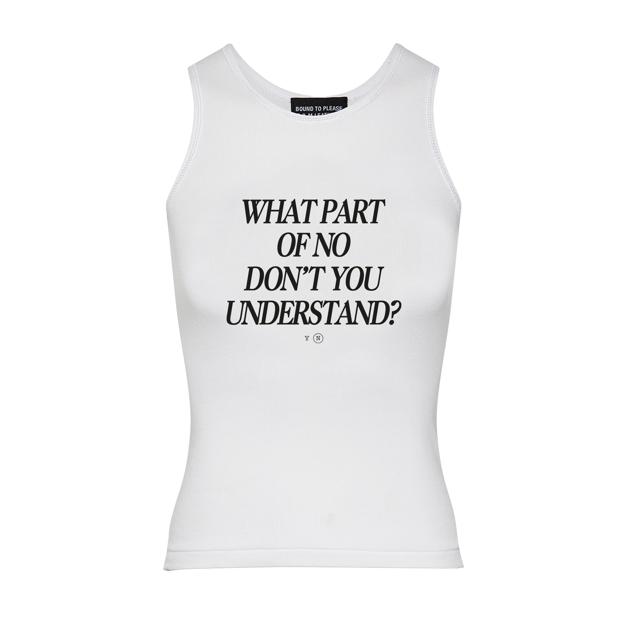 No Agency x R&M collab Tank Top. Available in white with black print.