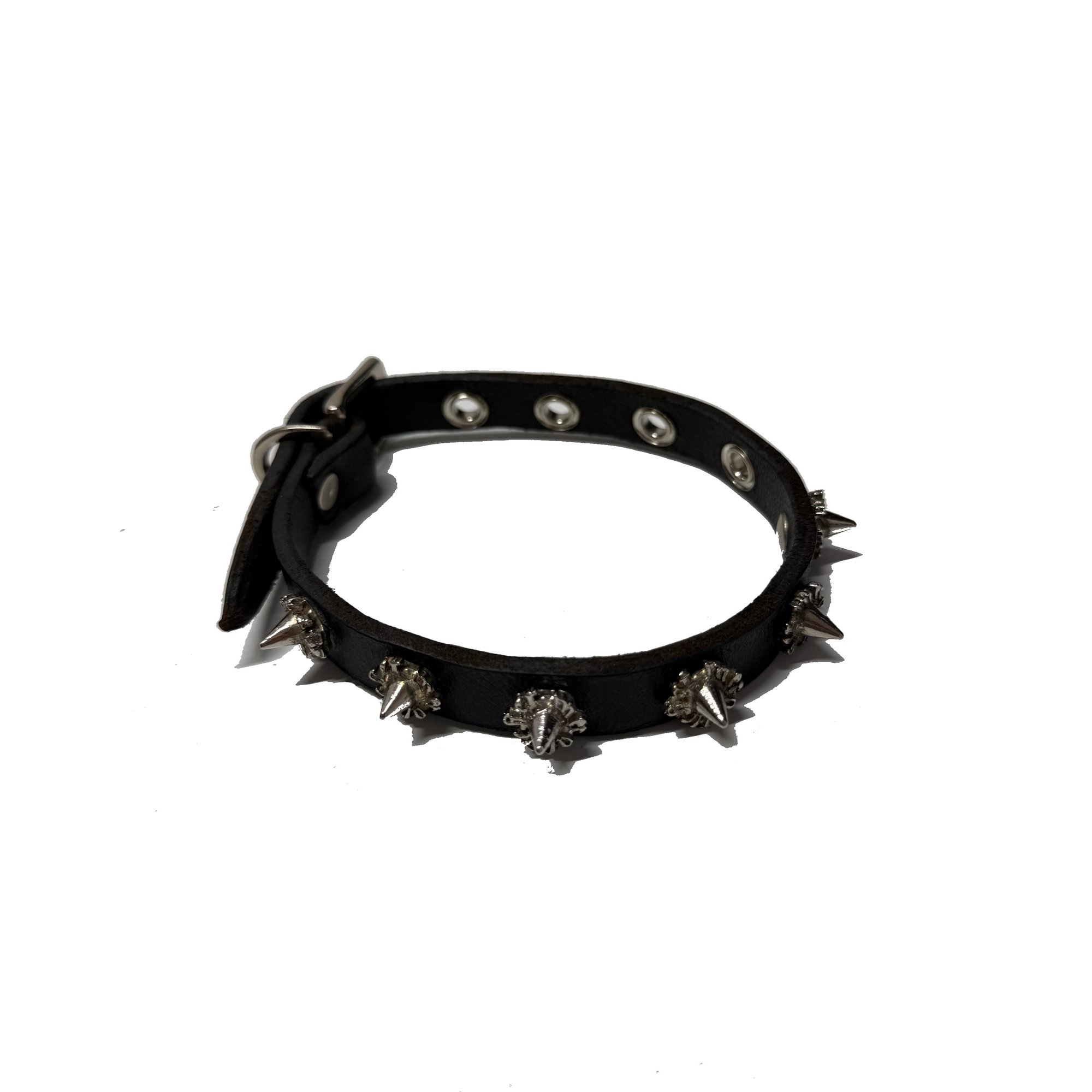 Black leather spiked choker.