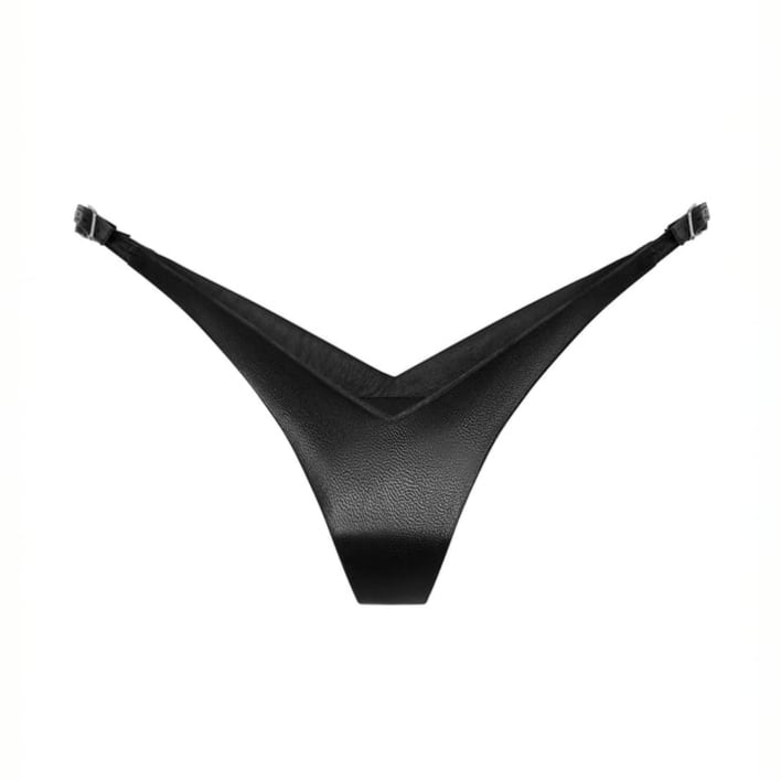 Leather micro thong with deep v front detail. This style is adjustable by side buckles.